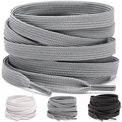 Miscly [3 Par] Platta Skosnören för alla typer av Skor och Sneakers – 8mm Breda (137 cm, Grå)