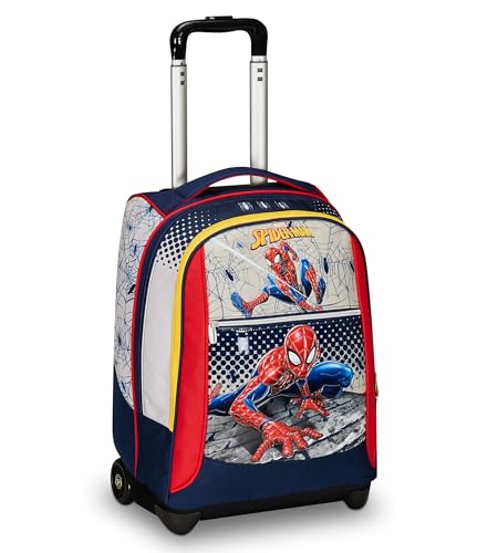 Spider Man Skolväska stor, röd och grå, dubbelfack, vattenflaska och crossover-system, skolryggsäck resor, Flerfärgad, Taglia Unica, skolvagn