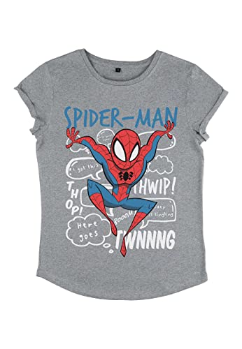Marvel Kvinnors Spider-Man Classic-Spidey Doodle Thoughts rullad ärm t-shirt, melange grå, L, Melange grå, L