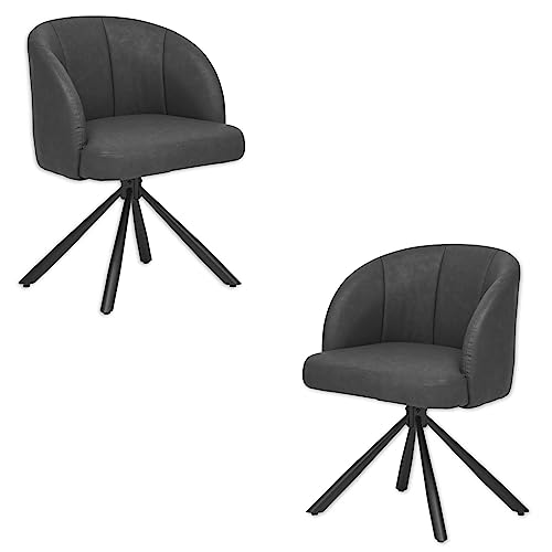 Stella Trading Grace Matrumsstolar uppsättning av 2 i läderutseende med svart metallram, antracit-moderna stolar för matsal och vardagsrum, 60 x 81 x 58 cm