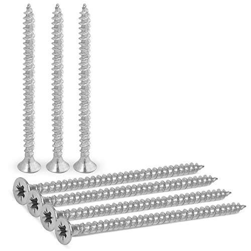 3,5 x 50 mm (9/64 tum x 2 tum) träskruvar (100 st) – kommersiellt graderat tungt zinkbelagt stål försänkt Pozi-drive-huvudskruvar för alla typer av trä