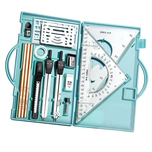 Ritningssats, ritningssatser | 16 delar professionell geometriuppsättning med metalllinjaler | Kompass- och gradskiva set med triangulär linjal, ritpennor, rittillbehör