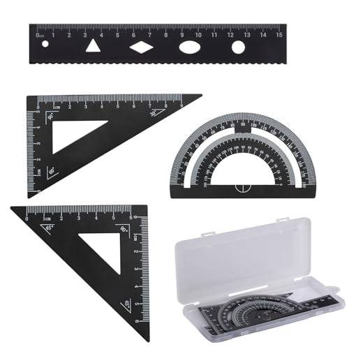 inodiref 4 delar aluminiumlegering linjal set matematiklinjal geometri verktygssats skala linjal gradskiva studenttillbehör 4 i en mätlinjal för lärare student ritning och mätning svart