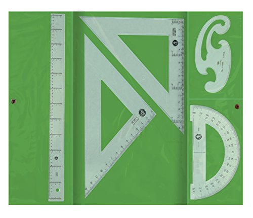Liderpapel Set fyrkantig 25 cm, linjal 30 cm, gradskiva 15 cm och kurvor mall påse i genomskinliga färger