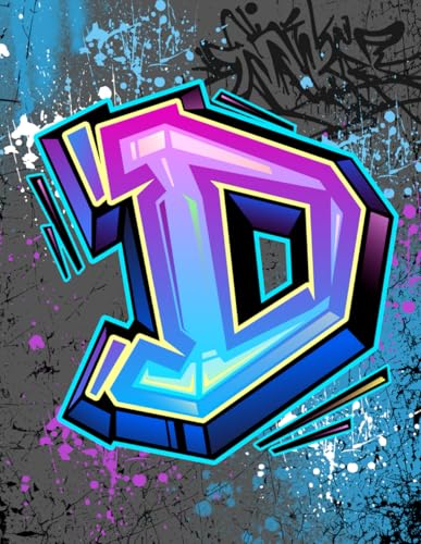 Graffiti Monogram Notebook – Letter D | Teal, Purple & Royal Blue Design, 8.5 x 11 College Ruled Lined Journal with Urban Street Art Style Initial: ... Tweens, Students and Back to School Supplies
