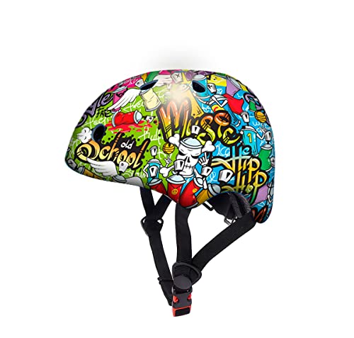 DEQUBE- justerbar barnhjälm - hjälm för pojkar och flickor i åldrarna 2-7 år - ultralätt och säker - robust och andningsbar- diameter 50–54 cm. Graffiti design (914D00023)