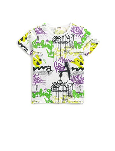 Koton Boys's kortärmad graffiti tryckt bomull t-shirt, Vit design (0d0), 4-5 Jahre