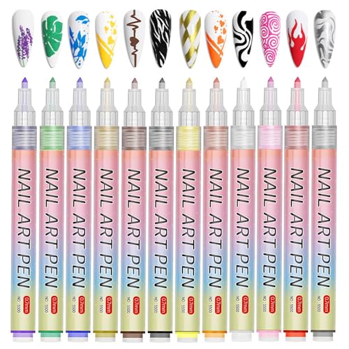 12-färgers nagelkonstpennset,3D fin spets nagelkonst,0,5 mm,Nagellackspenna,nagelkonstpennor,markörer för nagel nagellack graffiti-spets spets ritborste för gör-det-själv nagelkonst (1 set)