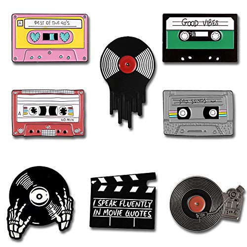 Seully 8 stycken emaljstift, grammofon/vinylskiva/skalle brosch, brosch för barn kvinnor mode halsband märke kläder väskor dekoration, metall, Metall