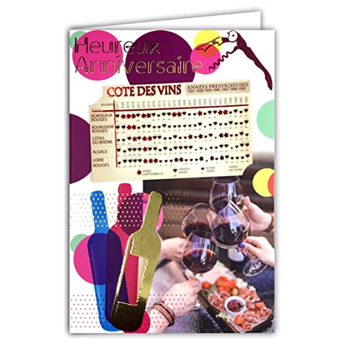 Afie 65-1404 Grattis på födelsedagskort med kuvert och vinkvist format visitkort gåva att erbjuda Grand Cru Millésimé speciell cuvé för dig aperitifbräda att dela med vänner Bordeaux