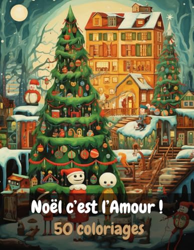 Noël c'est l'Amour ! 50 coloriages: grand format A4, arrière des dessins en noir, Relaxation, Anti-Stress, coloriage artistique.