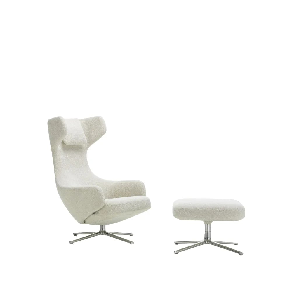 Vitra Grand Repos fåtölj & Ottoman aluminiumstativ Nubia creme-Sand-Polished