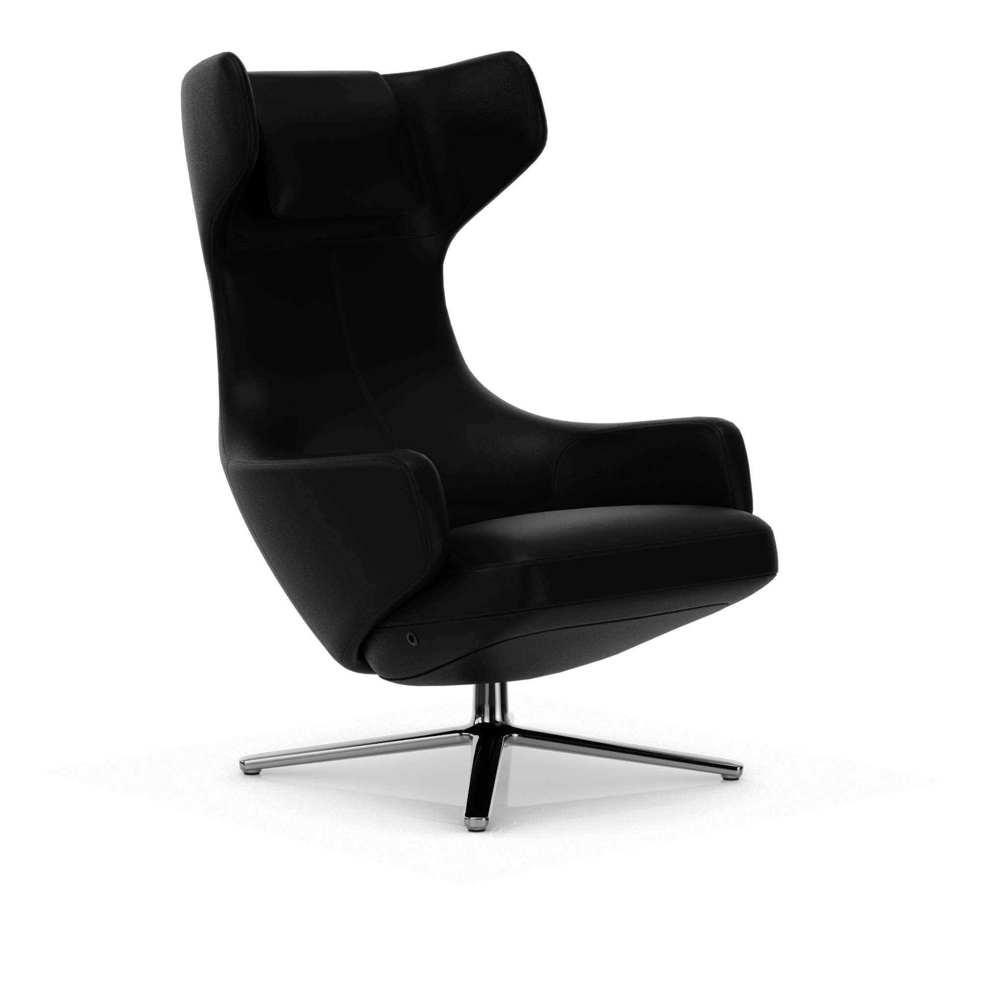 Vitra - Grand Repos Low, Aluminium Polished Base, Back/Seat Leather Premium L40 Nero - Fåtöljer - Antonio Citterio - Svart - Dun/Läder/Metall/Skum/Plast