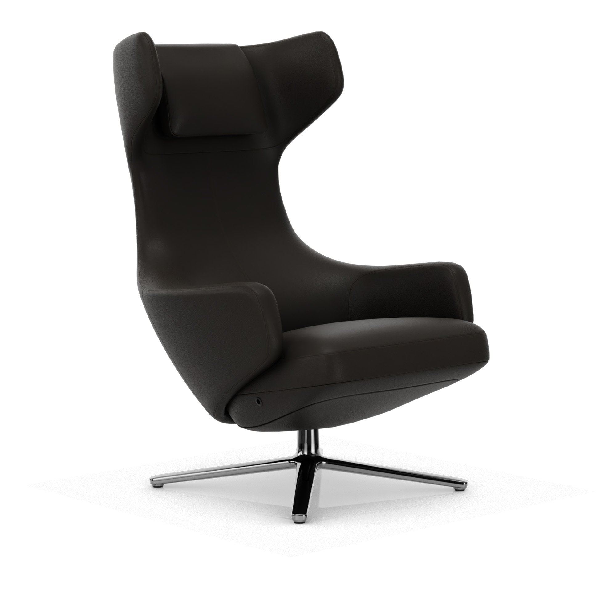 Vitra - Grand Repos Low, Aluminium Polished Base, Back/Seat Leather Premium L40 Umbra Grey - Fåtöljer - Antonio Citterio - Grå - Dun/Läder/Metall/Skum/Plast