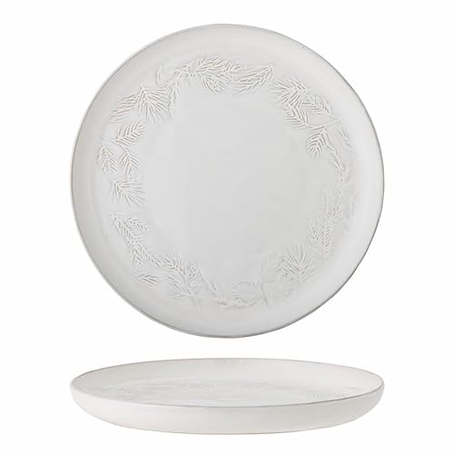 Bloomingville Vinter serveringsfat rund med grankrans i naturen av stengods, 34 x 5 cm, 82061120