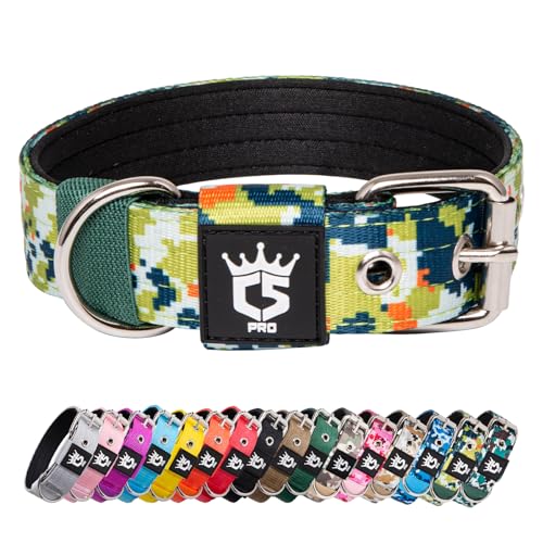TSPRO Taktiskt Hundhalsband Tjockt Hundhalsband 3,3 cm Brett Starkt Hundhalsband med Metallspänne Justerbar Halsband för Hund passa 32-40 cm Nacke (Camo Grön S)