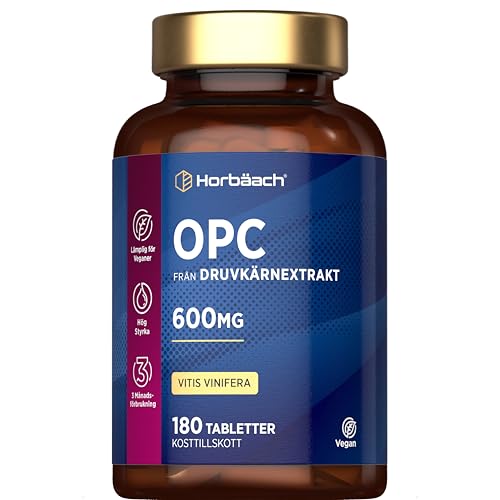 OPC Grape Seed Extract | 180 Veganska Tabletter | Druvkärneextrakt 95% | OPC Supplement Oligomera Proanthocyanidiner | av Horbaach