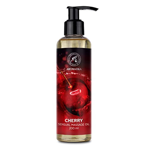 Sensual Cherry Massage Oil - 200 ml - Body Oil with Almond Oil Grape Seed Oil - Edible - Cherry Flavour - Natural - Kissable Massage Oil - Massage Oil for Couples - Love Oil