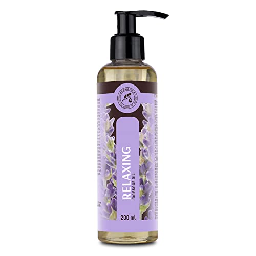 Relaxing Massage Oil 200ml - 100% Natural Calming Oil w/Oils Grape Seed - Jojoba - Almond - Lavender - Geranium Oils - Natural Cosmetics - Relax for Stress Relief - Good Sleep - Calming - Beauty