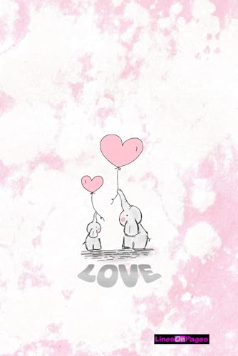 LOVE with Elephants holding Balloons - Modern Graphic, Lined Journal, Notebook, Diary, 120 pages, 6"x9", "LOVE" watermarks, Glossy Cover: Great Gift or Card Alternative