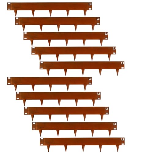 UNIGARDIA Flexibel gräskant av cortenstål 10 m – trädgård metall rabattkant 185 mm hög – rabattgräns med rost slå lätt ihop, 1 par monteringshandskar ingår, Corten
