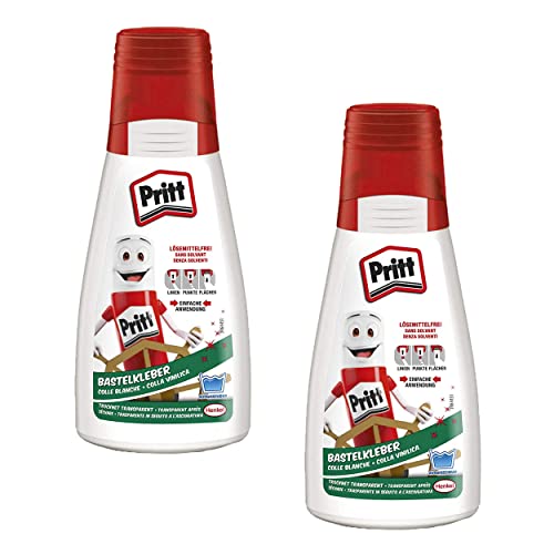 Pritt pyssellim, 2 flaskor à 100 g transparent torkning lim för hem, skola eller kontor, vit gräsklippare för barn