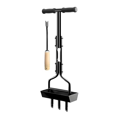Deecam Gräsluftare, ljuddämpare för gräsmattor med återställningsfjädrar, T-handtag, gräsluftare, automatisk rengöring av löv och smuts, gräsmatta, luftare, verktyg för trädgård, gräsmatta