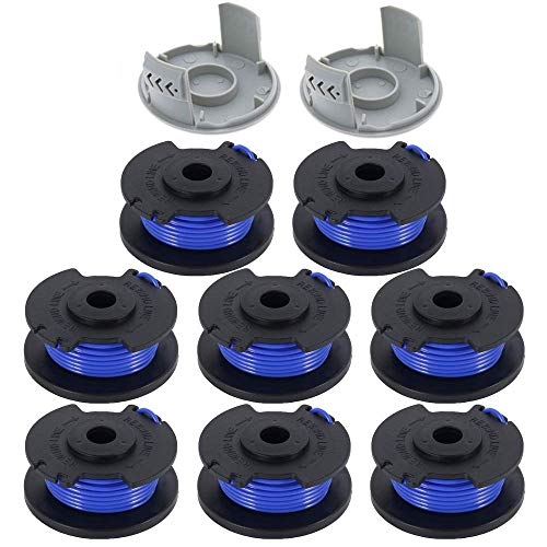 Ersättningsspole för grästrimmer 0,065 tum, 18-Volt 24V 40V, kompatibel med Ryobi One+ AC14RL3A, automatisk matning av trimmertråd 522994001 lock. (8 spolar + 2 lock)