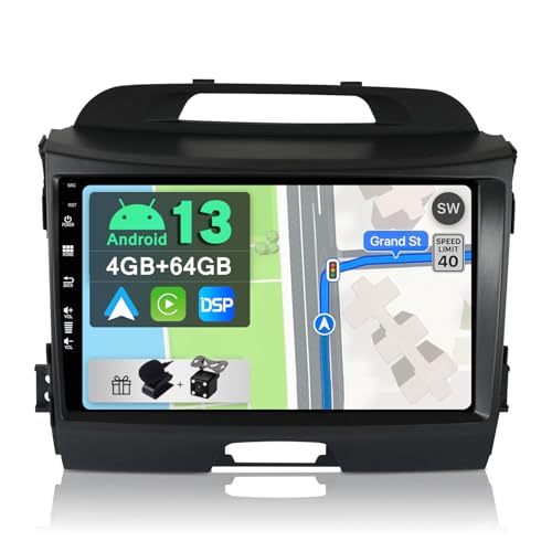 YUNTX Android 14 2 Din bilstereo passar Kia Sportage (2010-2015)-4G+64G- Stödja CarPlay/Android auto/DSP/GPS-8 Core-Gratis 4-LED Camera - DAB/Ratt kontroll/MirrorLink/360 Camera