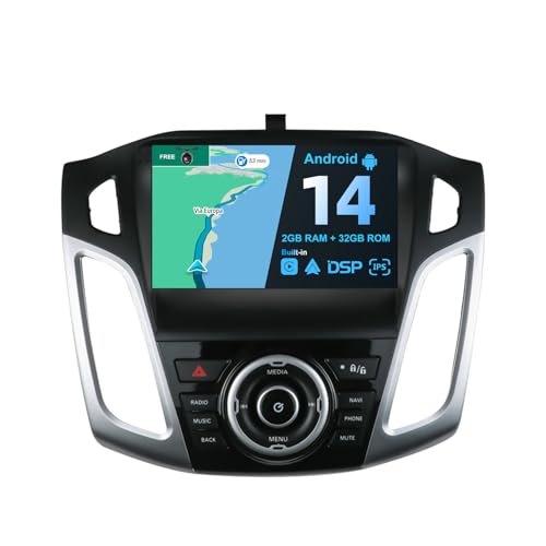 JOYX Android 14 bilstereo passform för Ford Focus (2010-2017) – 2G/32G – GPS 2 Din – huvudenhet med gratis bakre kamera och Canbus – stöder DAB/ratt/Bluetooth/WiFi/Mirrorlink/4G/Carplay – 9,7 tum