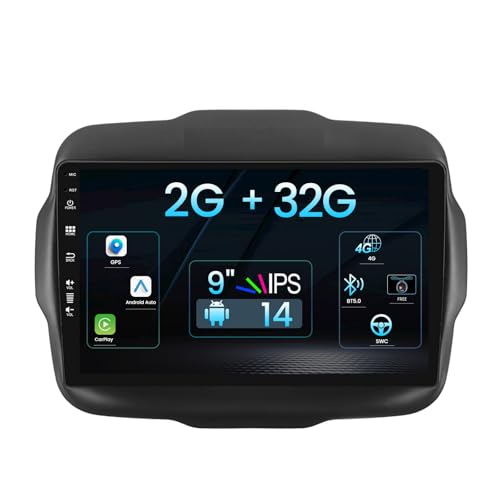 MISONDA Bilradio Android 14 för Jeep Renegade 2015-2020 - GPS 2G+32GB - Gratis bakre kamera - 9 tum IPS - STÖD DAB/Rattkontroll/WiFi/Bluetooth/Mirrorlink/Carplay/USB/RDS