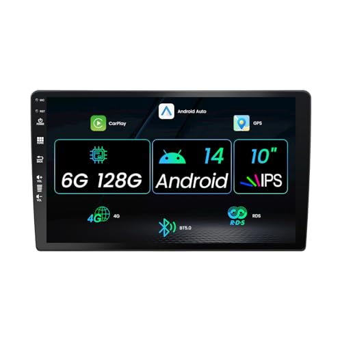 MISONDA 10 tum 2 Din Android bilradio bakåtvänd kamera & mikrofon gratis stöder rattkontroll/Carplay/Android Auto/DSP/RDS/WiFi/DAB/BT/GPS (6G+128G)