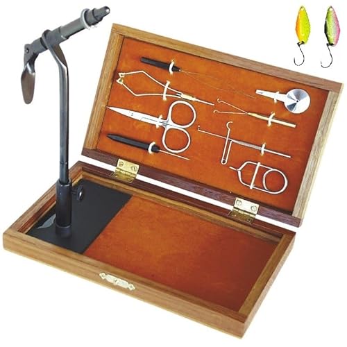 blntackle76 Set flugbindning av fint trä, bindande set för flygning, bindningsverktyg + 2 gratis öringspoonger