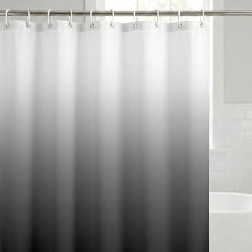 Americanflat 71 x 74 grått ombre duschdraperi – 100% polyester duschdraperi – vattentåligt baddraperi med metallöljetter och 12 ringar för duschdraperi – tonade duschdraperier för badrum