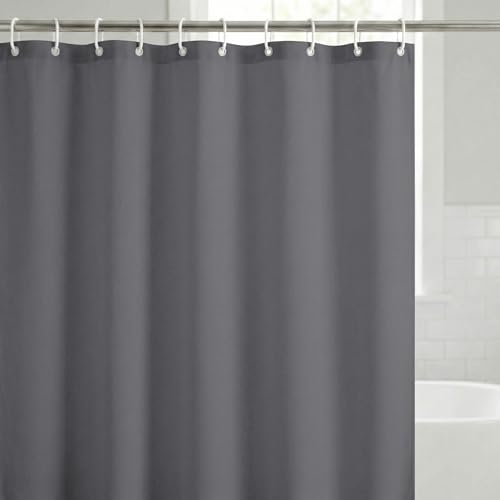 Americanflat 71 x 74 solitt grått duschdraperi – 100% polyester duschdraperi – vattentåligt baddraperi med metallöljetter och 12 ringar för duschdraperi – långa duschdraperier för badrum