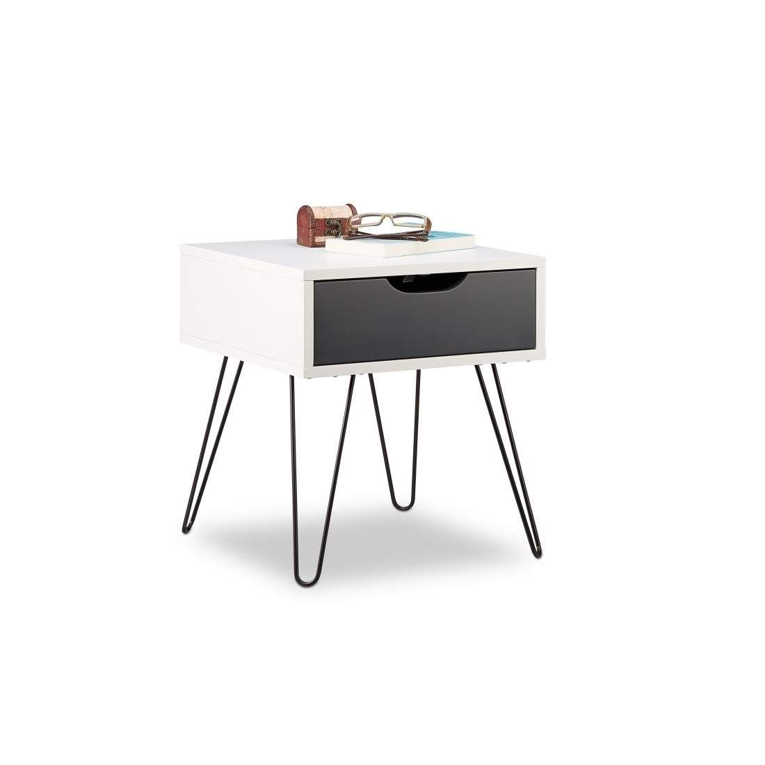 Sängbord sidobord i trä med 2 lådor soffbord modernt soffbord grått