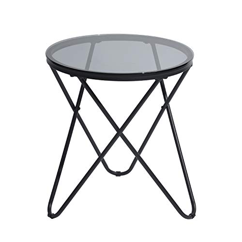 39F FURNITURE DREAM Rund metall och härdat glas, skandinaviskt sängbord för vardagsrum, grått, glas, 45 x 45 x 50 cm
