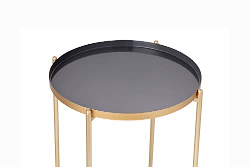 LIFA LIVING Ella Soffbord, Runt Sidobord av Guldmetall, Retro Fotpall, Modernt slutbord, Grått Sängbord, Brickbord för Vardagsrum och Sovrum, 37.5 x 47.5 cm