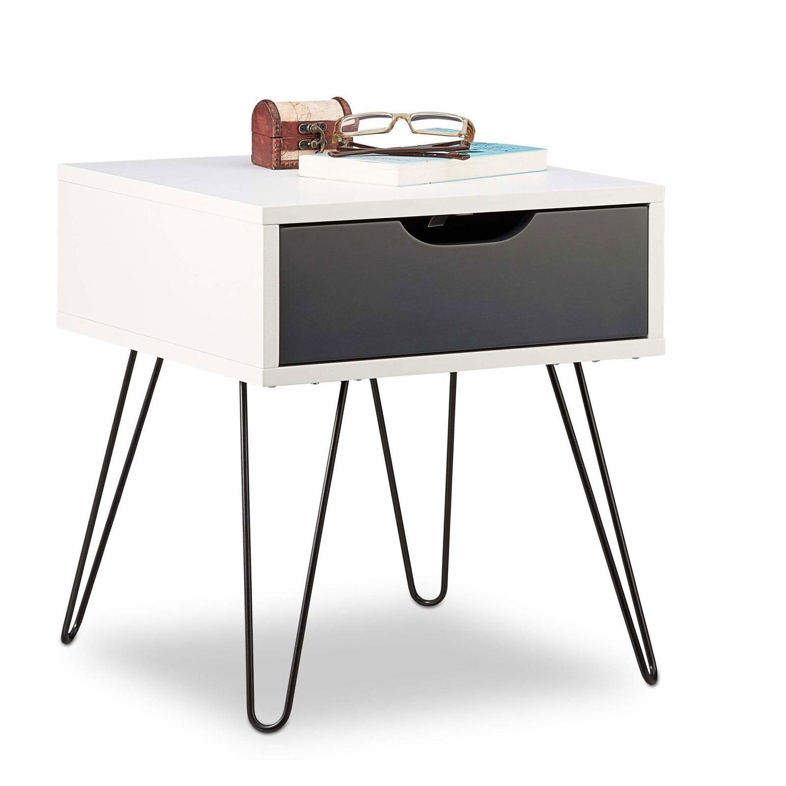 Vitt & grått sängbord