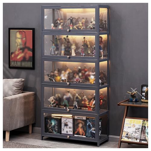 ARMERI Grått vitrinskåp Curio-skåp med akryldörrar, utställningsskåp för figurer och curiosasamlingar, golvstående, tydligt vitrinskåp för vardagsrum sovrum,80x32x172cm