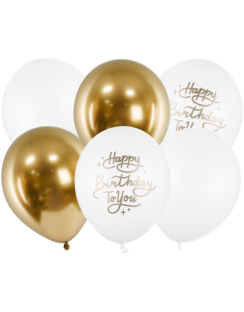 6 st 30 cm - Pastellvitt och Guldfärgat Grattis till dig ballonger