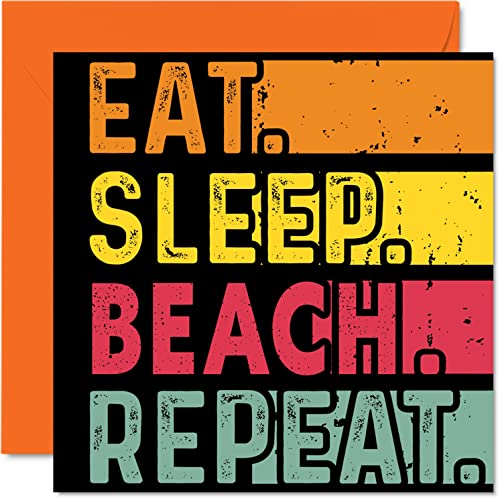 Födelsedagskort roligt för henne eller honom – ät, sov, strand, upprepa – grattis på födelsedagskort för kustälskare gåvor, 145 mm x 145 mm födelsedagskort för alla tillfällen barn eller vuxna