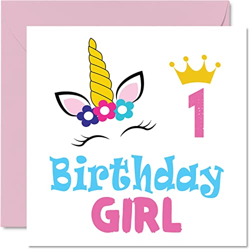 1:a födelsedagskort flicka – enhörnings födelsedagskort – grattis på födelsedagskort 1 år gammal flicka, flickors födelsedagskort för henne, 145 mm x 145 mm gratulationskort för dotter systerdotter barnbarn barn