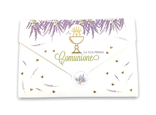 LINA OFFICINE KREATIVA GRAFIKATIONER 90-553 Biljett Grattis Kommunion Liten Pengarhållare - med etikett Stäng kuvert, 11 x 16 cm (lavendel-barn)