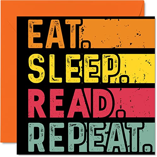 Födelsedagskort roligt för henne eller honom - Ät, sov, läsa, upprepa - grattis på födelsedagskort för bokmaskälskare, presenter, 145 mm x 145 mm födelsedagskort för alla tillfällen barn eller vuxna