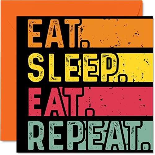 Födelsedagskort roligt för henne eller honom – ät, sov, äta, upprepa – grattis på födelsedagskort för matälskare gåvor, 145 mm x 145 mm födelsedagskort för alla tillfällen barn eller vuxna
