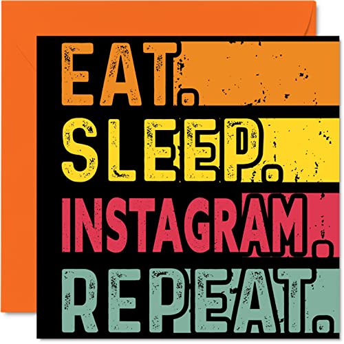 Födelsedagskort roligt för henne eller honom – ät, sov, IG, upprepa – grattis på födelsedagskort för sociala medier meme-älskare gåvor, 145 mm x 145 mm födelsedagskort för alla tillfällen barn eller vuxna