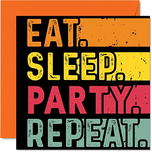 Födelsedagskort roligt för henne eller honom – ät, sov, fest, upprepa – grattis på födelsedagskort för presenter till musikdansälskare, 145 mm x 145 mm födelsedagskort för alla tillfällen barn eller vuxna