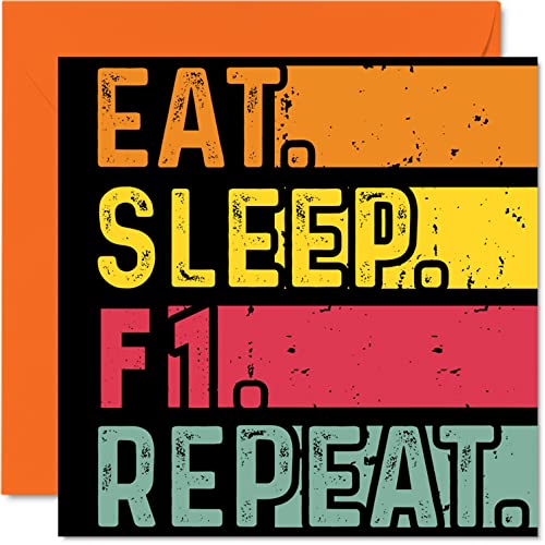 Födelsedagskort roligt för henne eller honom – äta, sova, F1, upprepa – grattis på födelsedagskort för formel ett motorsportälskare presenter, 145 mm x 145 mm födelsedagskort för alla tillfällen barn eller vuxna