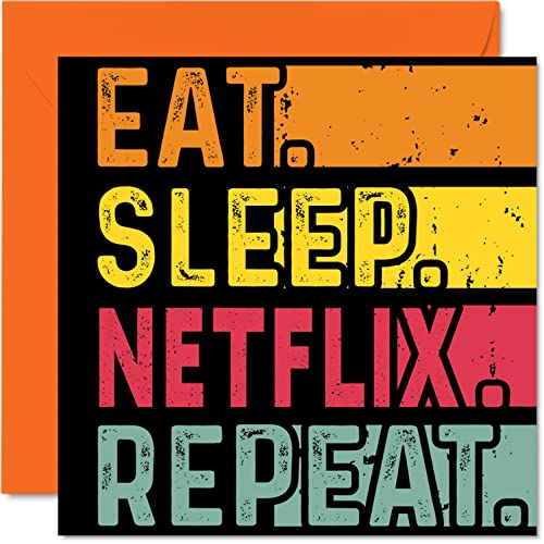 Födelsedagskort roligt för henne eller honom - Ät, sov, Netflix, upprepa - grattis på födelsedagskort för TV-filmälskare, presenter, 145 mm x 145 mm födelsedagskort för alla tillfällen barn eller vuxna